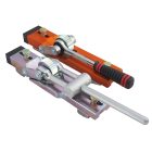 Designed to remove the external bead from a completed butt-fusion welded joint. The tool knocks onto the pipe bead, then alignment blocks slide against the pipe surface to guide it around the pipe. The blade cuts under the bead and the handle helps pull the tool around the pipe, cutting the bead away. Available in three different sizes.